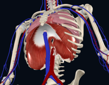 Na wysokości Th9, od linii pośrodkowej na prawo znajduje się otwór żyły głównej i trójkąt mostkowo-żebrowy.